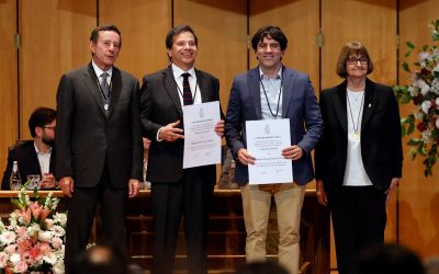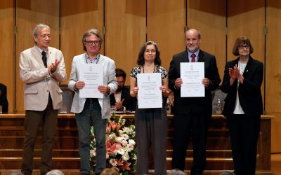 En el Aula Magna de la Facultad de Economía y Negocios, la comunidad de la Casa de Bello se reunió para conmemorar un nuevo aniversario institucional. La ceremonia, presidida por la Rectora Rosa Devés y que contó con la participación del Presidente Gabriel Boric, reconoció a 50 nuevos Profesores Titulares y otorgó la Medalla Rectoral a las y los seis Premios Nacionales 2025 que forman parte de la U. de Chile.