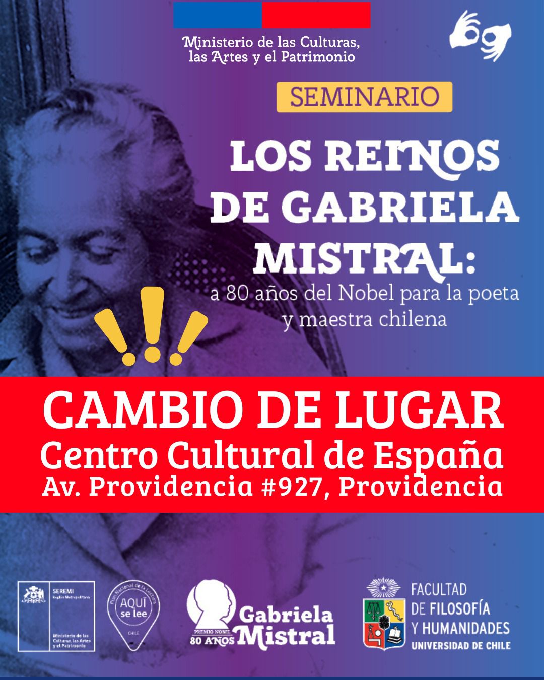 El Seremi de las Culturas, la Artes y el Patrimonio de la Región Metropolitana, Cristián Cerón Prieto, señaló que este seminario es una oportunidad muy importante en el camino iniciado por el Ministerio para conmemorar los 80 años del Nobel Gabriela Mistral, “porque nos ha permitido ir abriendo y descubriendo todos “los reinos” que componen su obra y vida. Vemos a Gabriela emerger con múltiples roles desde su propio territorio, contribuyendo a fortalecer nuestras identidades plurales, y al mismo tiempo, promoviendo la justicia social y la necesidad de una democracia profunda. Este seminario es un reino más que estamos contentos de explorar junto a la Universidad de Chile como institución pública”.