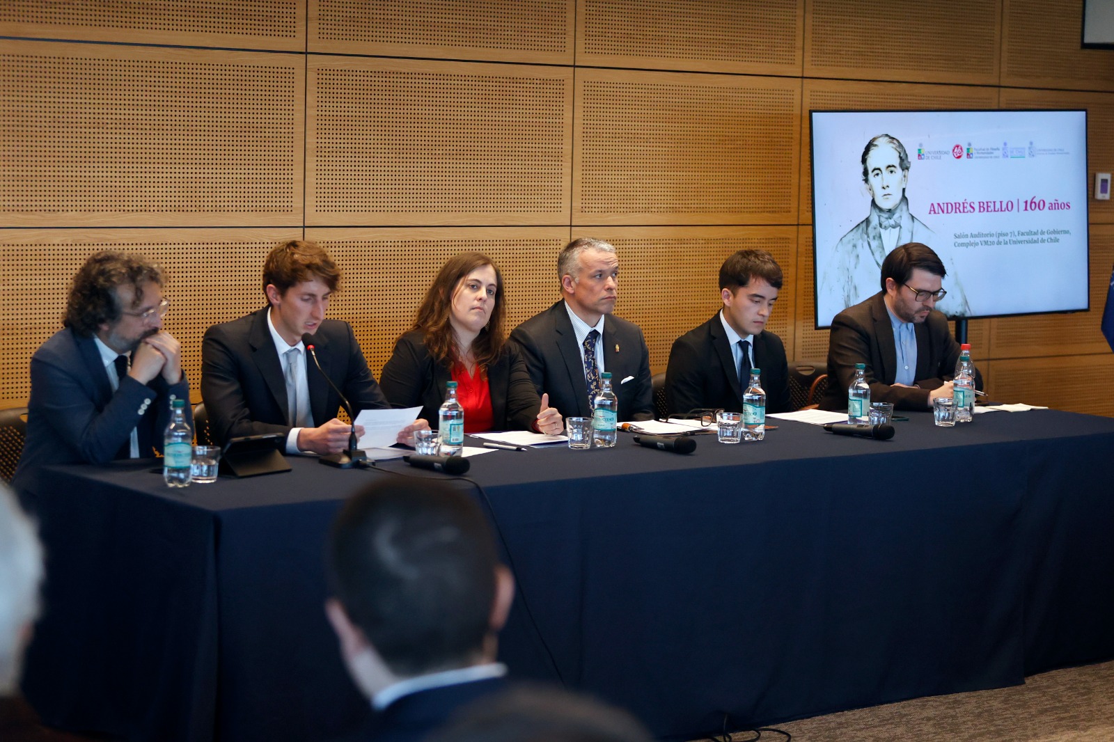 Con motivo de los 160 años del fallecimiento de Andrés Bello -a conmemorarse el próximo 15 de octubre-, la Universidad de Chile realizó una jornada académica para rendir homenaje al legado intelectual, humanista y fundacional de su primer rector. La actividad, organizada colaborativamente por distintas unidades académicas -entre ellas por la Cátedra Andrés Bello de la Facultad de Filosofía y Humanidades, la Facultad de Derecho, el Instituto de Estudios Internacionales y el Archivo Central Andrés Bello- fijó su énfasis en la especial visión humanista y latinoamericanista de Bello.