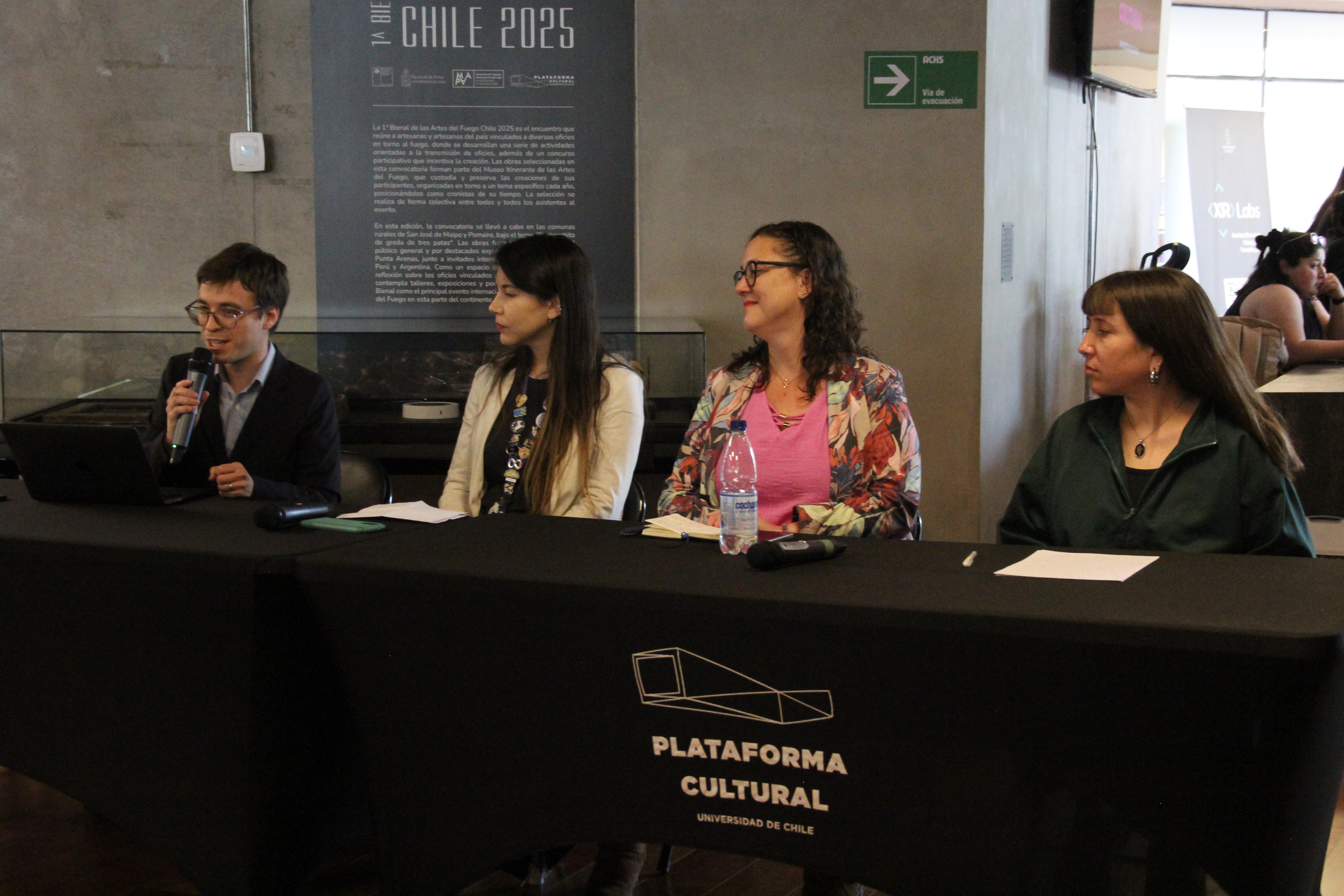 A continuación, se realizó el conversatorio “Voces para la inclusión”, moderado por Alejandro Wasiliew y que contó con la participación de Anaís Aluicio-González, psicóloga y encargada del Área de Equidad e Inclusión de la Facultad de Filosofía y Humanidades, Trinidad Cofré, profesional referente de la Ley N°21.545, Senadis y Gabriela Abarca, estudiante de la facultad.