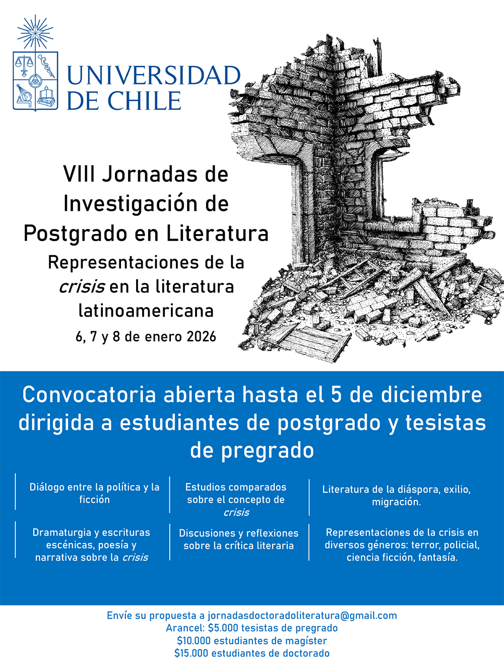 Latinoamérica puede ser entendida como una región en crisis permanente, es decir, en un estado de catástrofe cuyo inicio puede fecharse en 1492 con llegada de Cristóbal Colón, en que comenzó un proceso de reensamblaje forzado de diferentes mundos en un solo mundo. En este proceso confluyen expresiones de la desposesión originaria del período de conquista y colonización, así como la violencia social, política, económica y antropocéntrica propiciada por las propias repúblicas independientes, lo que, en su concurrencia, configura un escenario donde el futuro es un horizonte en disputa. De esta manera, conviene preguntarse ¿de qué forma la literatura y los estudios literarios han representado la crisis al interior de la historia latinoamericana? Y ¿cómo la literatura nos permite pensar estas crisis e imaginar sus posibles derivas?