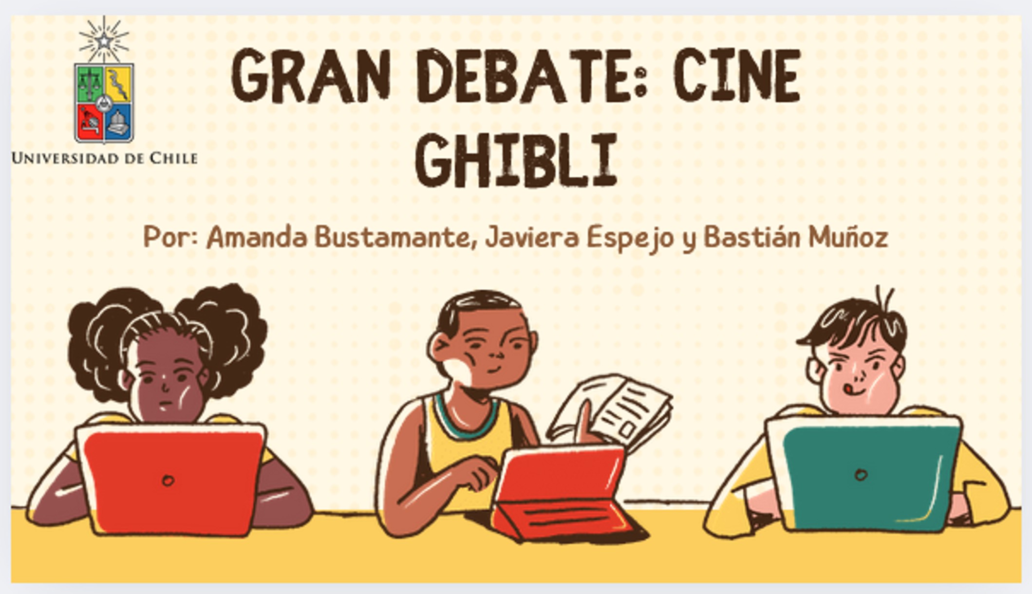 El Ciclo de Cine Ghibli buscó difundir el conocimiento y el debate sobre la guerra, a partir de la representación de la posguerra japonesa en películas del Studio Ghibli, específicamente La tumba de las luciérnagas, Porco Rosso y El viento se levanta. La iniciativa se desarrolló con estudiantes de la Escuela Básica Hernán Merino Correa, de la comuna de San Bernardo, y estuvo a cargo de Amanda Bustamante, Javiera Espejo y Bastián Muñoz.
