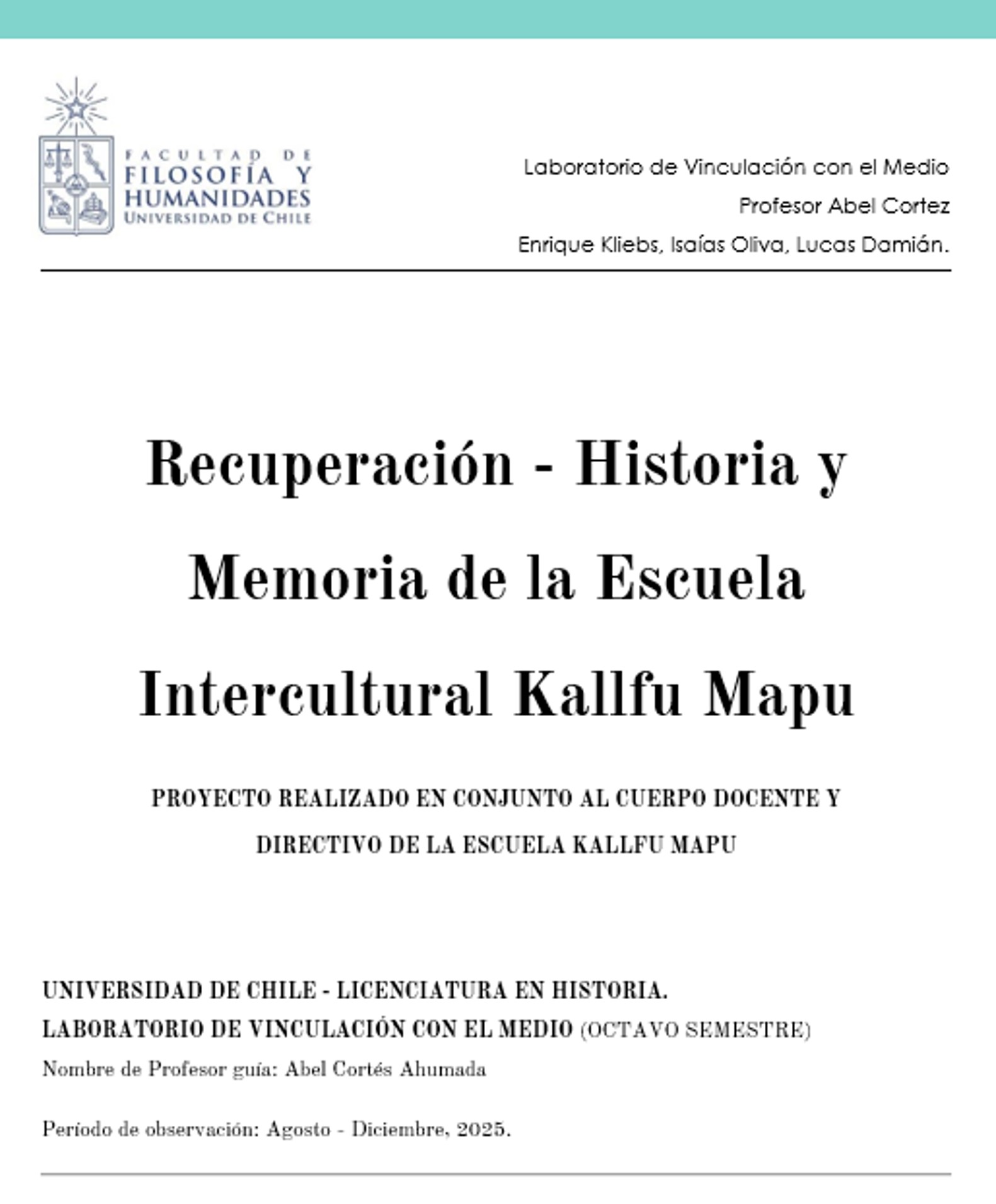 Uno de estos proyectos fue ¡Construyamos un Archivo!, que tuvo como objetivo resguardar y proteger la memoria escolar documental de la Escuela Intercultural Kallfü Mapu de Ñuñoa, mediante la creación de un archivo construido con la participación activa de la comunidad escolar.